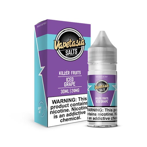 No reviewsVapetasia Killer Fruits NTN SALTS ICED Grape Ejuice chills an extraordinary grape flavor. Stock up on 30mL bottles at 24mg and 48mg non-tobacco nic...