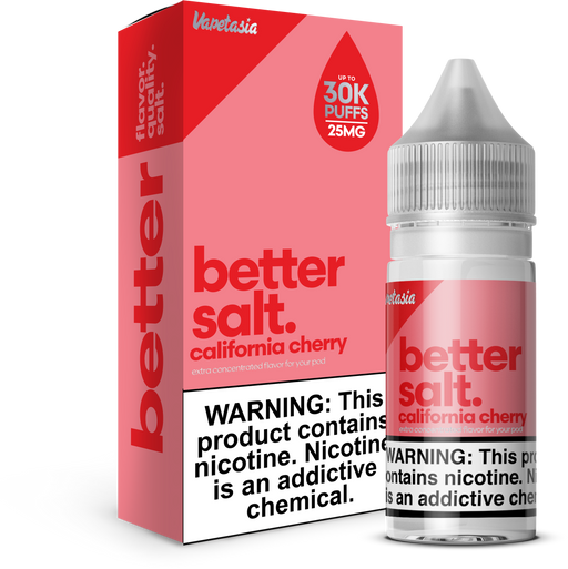 Savor California Cherry by Better Salt, a delightful combination of ripe cherries and cooling menthol. Smooth and flavorful, this fruity blend prov...