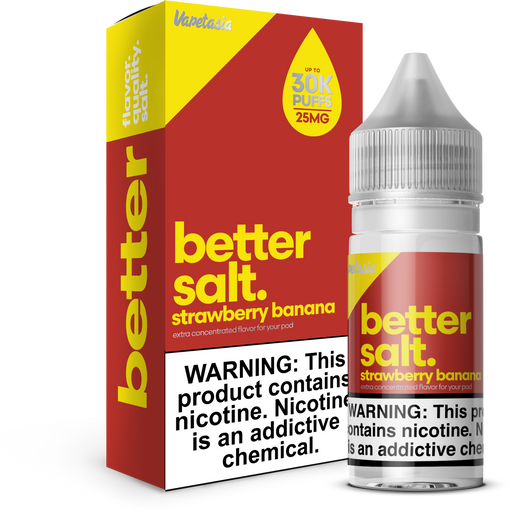 Delight in Strawberry Banana by Better Salt, where sweet strawberries and ripe bananas are served over a hint of ice. Smooth, fruity, and invigorat...