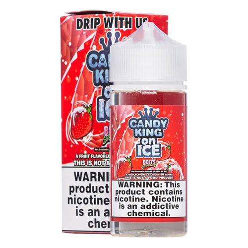 Strawberry Belts by Candy King On Ice features a sweet, icy blend of frozen strawberry fruit and classic strips of thin belt-shaped candy that just bursts of delicious menthol flavor. Enjoy frosty clouds of snowy strawberry belts with this delicious eliquid twist of a childhood favorite candy on ice!